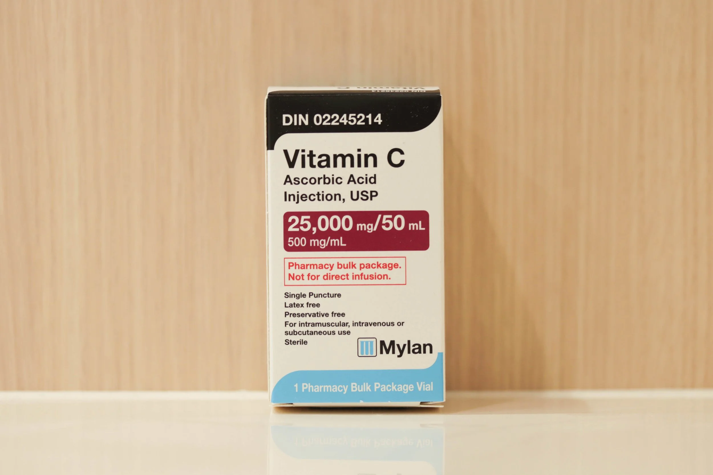 国内の点滴用ビタミンCには防腐剤が含まれていることから、当院では、防腐剤の含まれていないマイラン社ビタミンCを用いております。